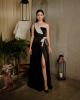 mendesain one-shoulder dress ini. Semakin cantik karena ada tambahan pita di bagian pinggang.